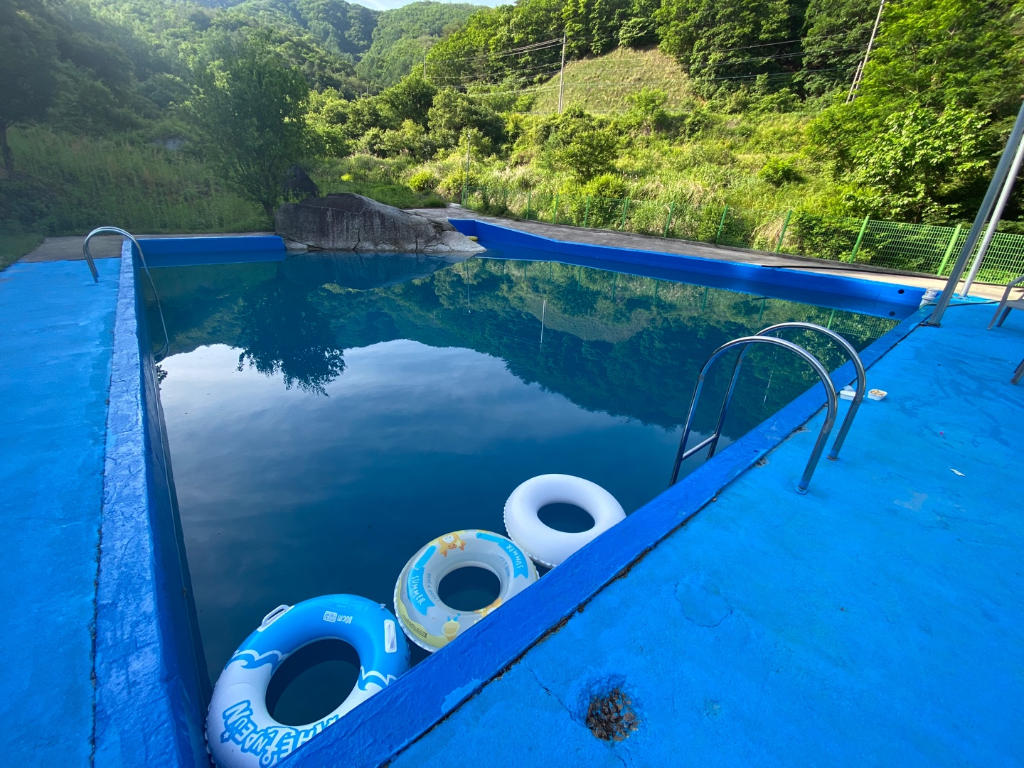 옆 계곡에서 직접 물을 받아 수영장을 채우는데,