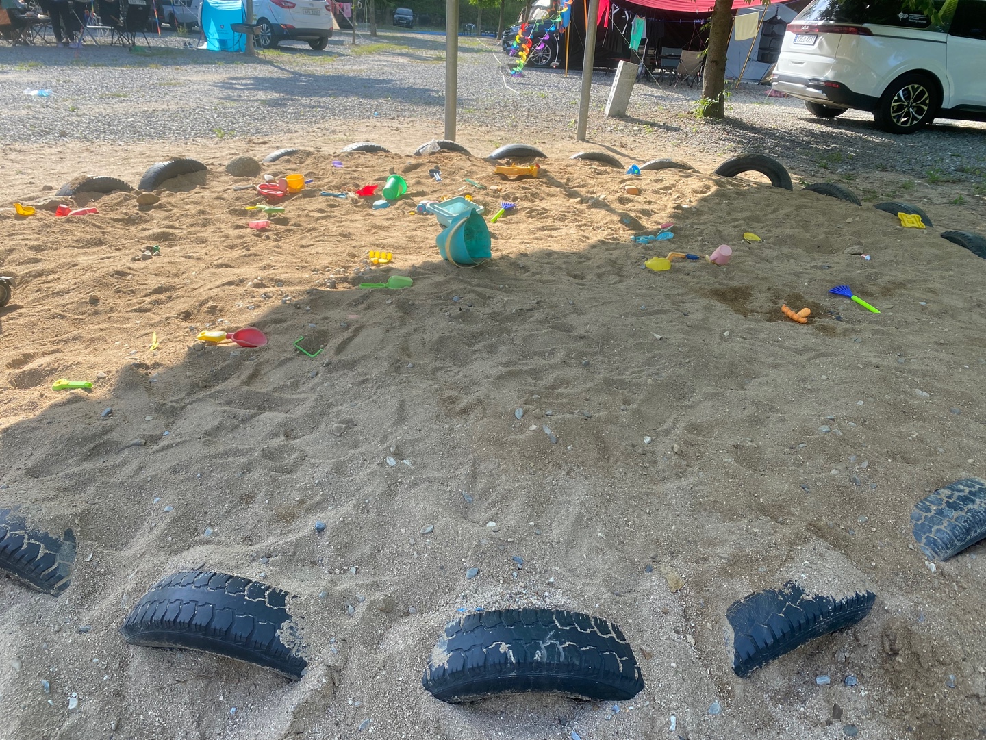 아이들이 놀 수 있는 곳이 수영장 말고도 모래놀리응 할 수 있는 곳과 모래놀이장 옆 썰매(?) 장이 있다.
