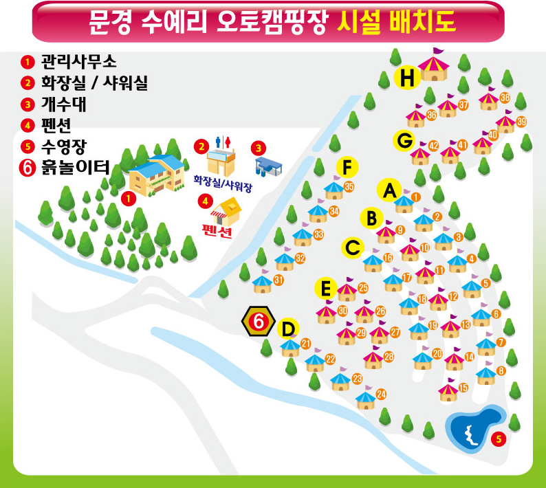 이곳 수예리 캠핑장은 아예 여러 팀이 모일 수 있는 자리가 있어 두 팀이상 캠핑이 계획이 있다면 H구역을 이용하면 좋을 듯하다.