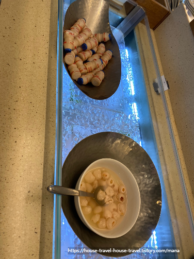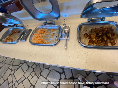 ▶골드카드를 구매하였는데 일정에 마나가하 섬을 간다거나 다른 외부일정으로 식사를 하지 못하게 된다면 입구에 있는 직원에게 도시락을 요청할 수 있는데, 빈 도시락 용기를 받아 식당에 있는 메뉴를 취향껏 담으면 된다.