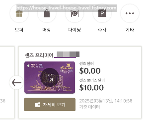 그렇게 이것저것 작성하고 나면 아까 받은 어플 안에 가입하면서 받았던 라이프스타일 카드 말고 샌즈프리미어 e카드가 발급되어 있어요.