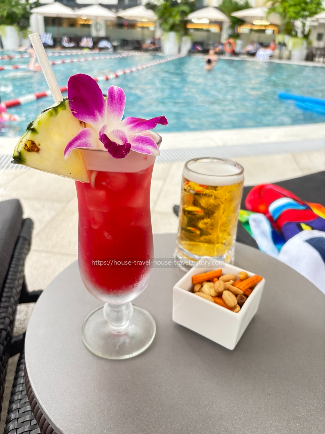 스위소텔 더 스탬포드 수영장안에 위치한 Bar가 있는데 저는 시그니처 칵테일 중 하나인 Singapore Sling을 주문했어요. 다녀오신분들이 추천하셔서 먹어봤는데 엄청 특별한 맛은 아니었지만 그래도 맛있었어요.