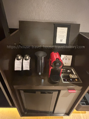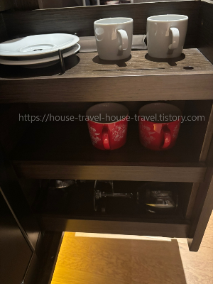 캡슐 커피도 준비되어 있고 신기하게도 텀블러가 있더라구요.