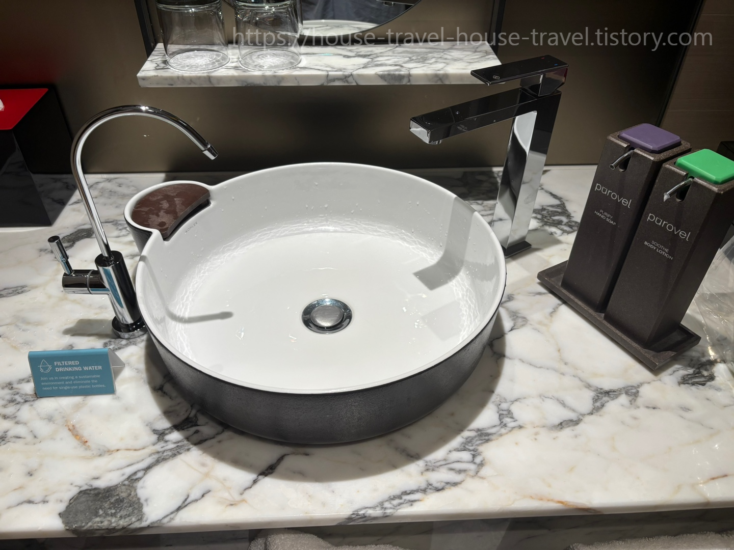 세면대에 정수기가 달려 있어서 먹어도 된다고 해요.